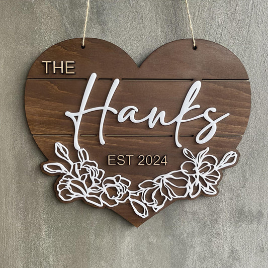 Custom Heart Sign with Last Name and Established Year